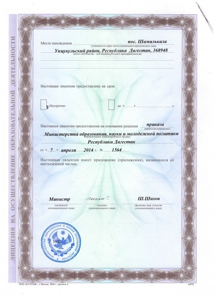 | Адрес местонахождения образовательной организации* | 368950, Республика Дагестан, Унцукульский район, пгт.Шамилькала, ул.Мусы Балаханского, 8 |